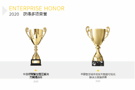 ·連續(xù)2年榮獲中國(guó)領(lǐng)軍智慧園區(qū)解決方案提供商&中國(guó)領(lǐng)軍智慧城市大數(shù)據(jù)可視化解決方案提供商