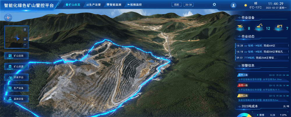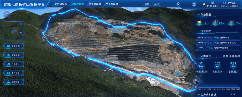 構(gòu)建數(shù)字礦山將礦山的各個(gè)部分以數(shù)字化的方式呈現(xiàn)于計(jì)算機(jī)虛擬現(xiàn)實(shí)環(huán)境中,通過(guò)數(shù)據(jù)化、模擬化和程控化手段,實(shí)現(xiàn)現(xiàn)場(chǎng)生產(chǎn)全過(guò)程智能化控制、提高礦業(yè)安全管理水平、優(yōu)化礦產(chǎn)資源利用率和提升整體收益水平。通過(guò)實(shí)時(shí)監(jiān)控、數(shù)據(jù)分析和優(yōu)化等手段,礦業(yè)數(shù)字孿生可以幫助企業(yè)提高生產(chǎn)效率、降低運(yùn)營(yíng)成本、提高安全管理水平,同時(shí)優(yōu)化資源利用效率,提升整體收益水平