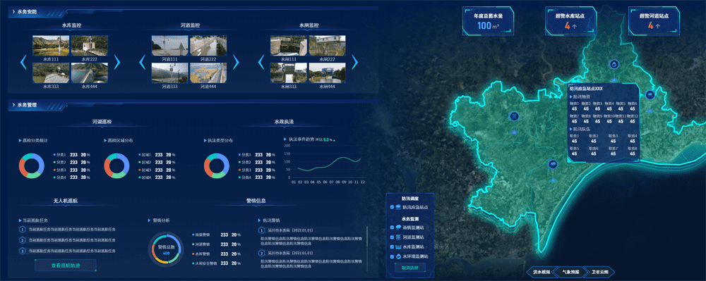 集合各類終端數(shù)據(jù),通過數(shù)字孿生可視化平臺(tái),收集和整合流域水文數(shù)據(jù)、污水處理、地下水監(jiān)測(cè)、流域氣象、社會(huì)用水情況等等數(shù)據(jù),用一平臺(tái)打破信息孤島,掌握全局水務(wù)狀況