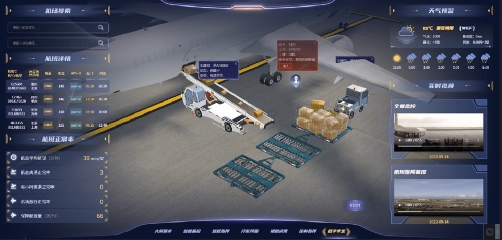 綜合監(jiān)測(cè)分析氣象、航班、空港的實(shí)時(shí)數(shù)據(jù),對(duì)有延誤風(fēng)險(xiǎn)或已形成延誤的突發(fā)狀況進(jìn)行實(shí)時(shí)告警,結(jié)合AI算法與相關(guān)的實(shí)時(shí)/預(yù)測(cè)數(shù)據(jù),對(duì)航班延誤隨時(shí)間變化所造成的影響通過(guò)數(shù)字孿生方式將推演結(jié)果進(jìn)行呈現(xiàn)