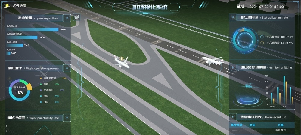 構(gòu)建孿生場(chǎng)景, 通過(guò)優(yōu)化整合數(shù)據(jù),實(shí)現(xiàn)跨終端、跨平臺(tái)、跨網(wǎng)絡(luò)的全方位業(yè)務(wù)展示,簡(jiǎn)稱一套基于數(shù)字孿生技術(shù)的可視化、智能化、精細(xì)化管理的運(yùn)維管理應(yīng)用,實(shí)現(xiàn)信息感知、智能化控制調(diào)度、主動(dòng)式運(yùn)維管理,助力機(jī)場(chǎng)業(yè)務(wù)實(shí)現(xiàn)業(yè)務(wù)協(xié)同與敏捷創(chuàng)新,高效支撐機(jī)場(chǎng)數(shù)字化轉(zhuǎn)型